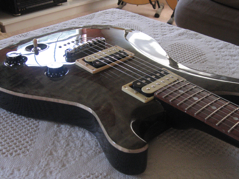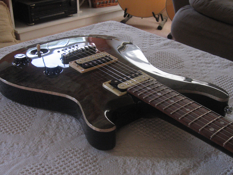Mahogany Set Neck, Bent Wood Sides and Flame Maple Binding
