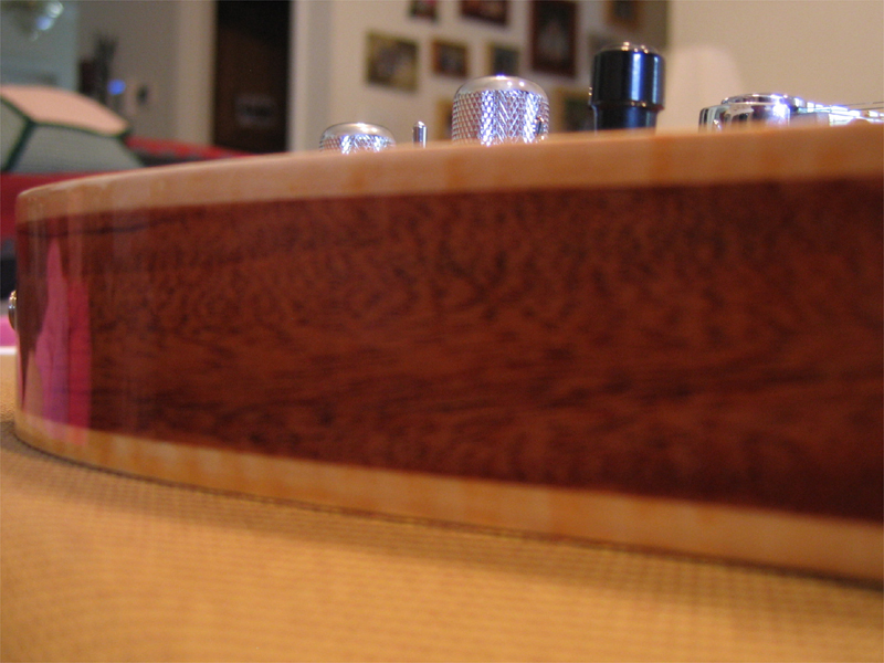 This gives the look of an acoustic guitar where no end grain is visable. The body is double