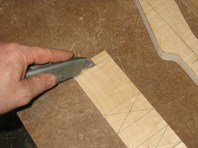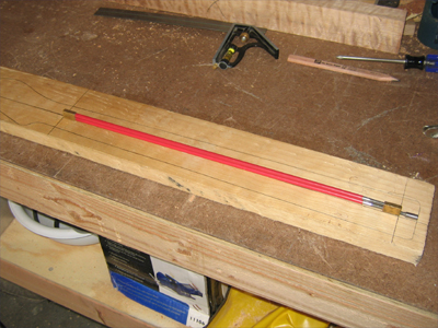 Now I'm ready to glue up the neck. I also took the time now to remove the extra wood from the nut slot and mark the fret positon markers.