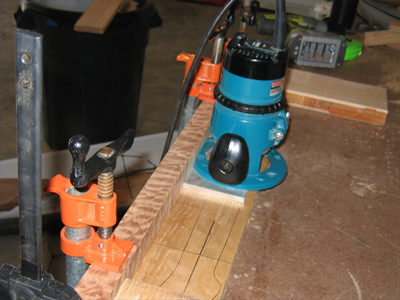 Well, it's hot as can be in the garage/shop today. A heat index of 103. I'm moving quickly so I didn't take a lot of pics but I did take some of the results. The routing of the truss rod slot was done just as described above and the profiling was done just as with the body...though I did change it up and use a flush trim router bit with the template on top of the blank. After messing up a couple of blanks on the end grain at the butt of the neck, I figured a change was called for...it worked great!